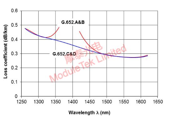 On G652 C&D fiber, the attenuation coefficient α of the 1270nm wavelength is 0.46dB/km, that of the 1310nm wavelength is 0.42dB/km, and that of the 1550nm wavelength is 0.28dB/km.