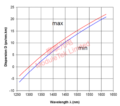 Optical signals of different wavelengths have different dispersion levels when transmitted in optical fibers, as shown in Figure 3 below: