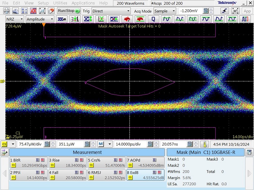 Module eye diagram at 10G rate |