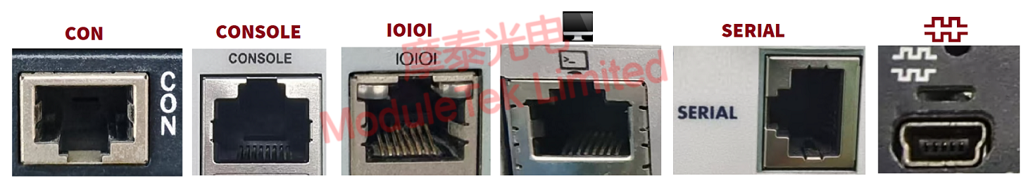 There are various physical forms of switch console ports. Observing the test equipment in Moduletek Laboratory reveals that there are console interfaces including but not limited to the following types. Among them, the most common one is the RJ45 RS232 serial port.